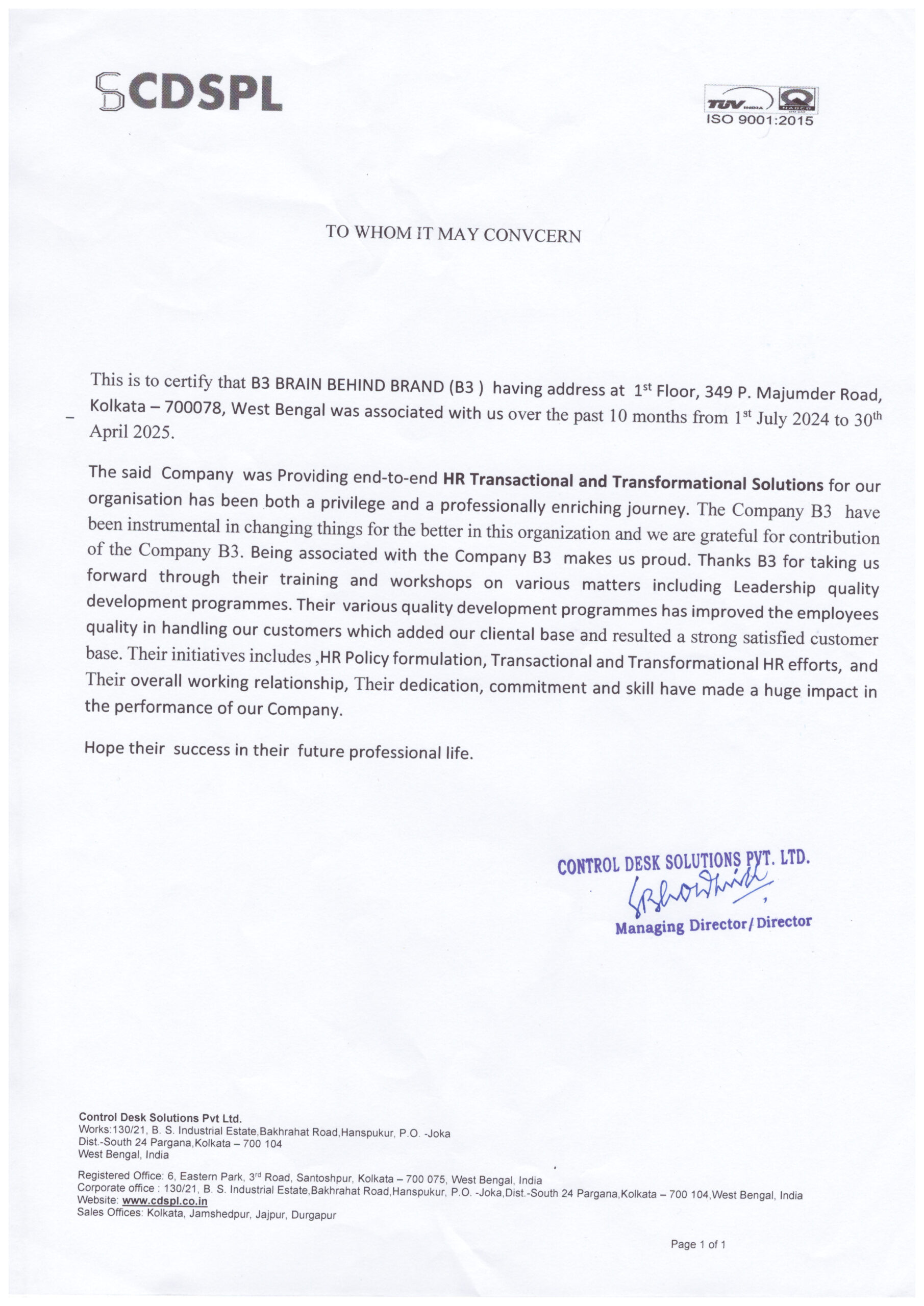 Organisations do not struggle because of a lack of ambition. They struggle when growth exposes gaps in structure, capability, and execution. B3 Brain Behind Brand partners with MSMEs at this critical stage, helping leadership teams realign how the business operates as complexity increases. The perspective comes from sixteen years of working inside real businesses, across functions and growth cycles, translating strategy into measurable outcomes.